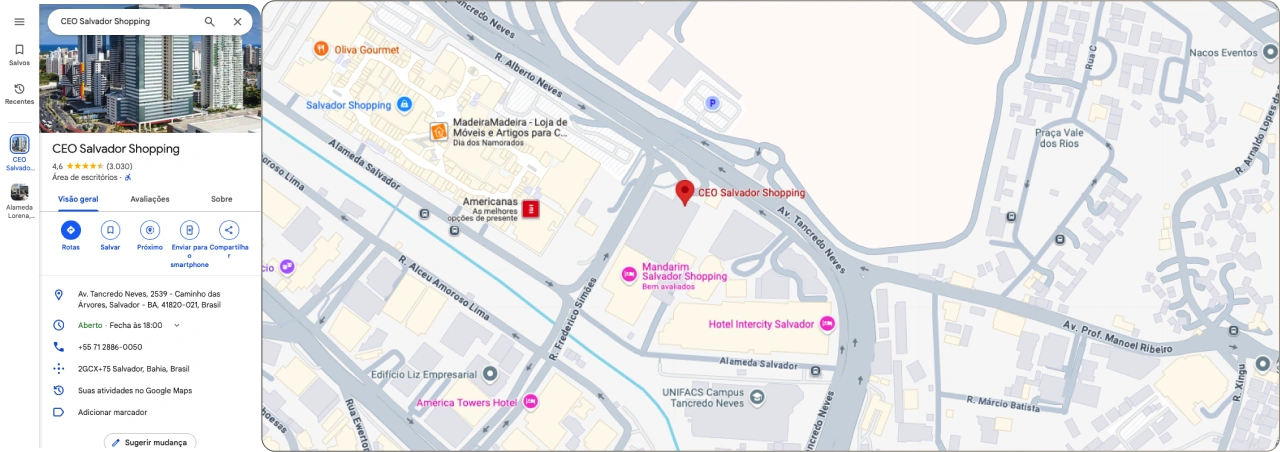 📍 Endereço: CEO Salvador Shopping - 706-707, Torre Londres.